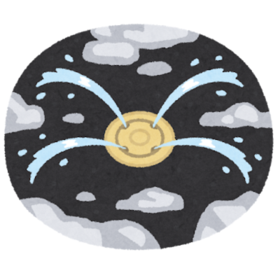 肌にべったりと張り付いたズボンたちをパタパタと引きはがしつつどうしようかと思案していると突然水の噴出が止まる。